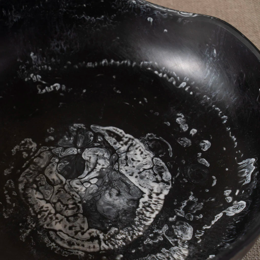 The Flow Resin Salad Bowl is distinctive and organic with its marble finish. Each salad bowl is handmade and no two patterns are the same. Food Safe.