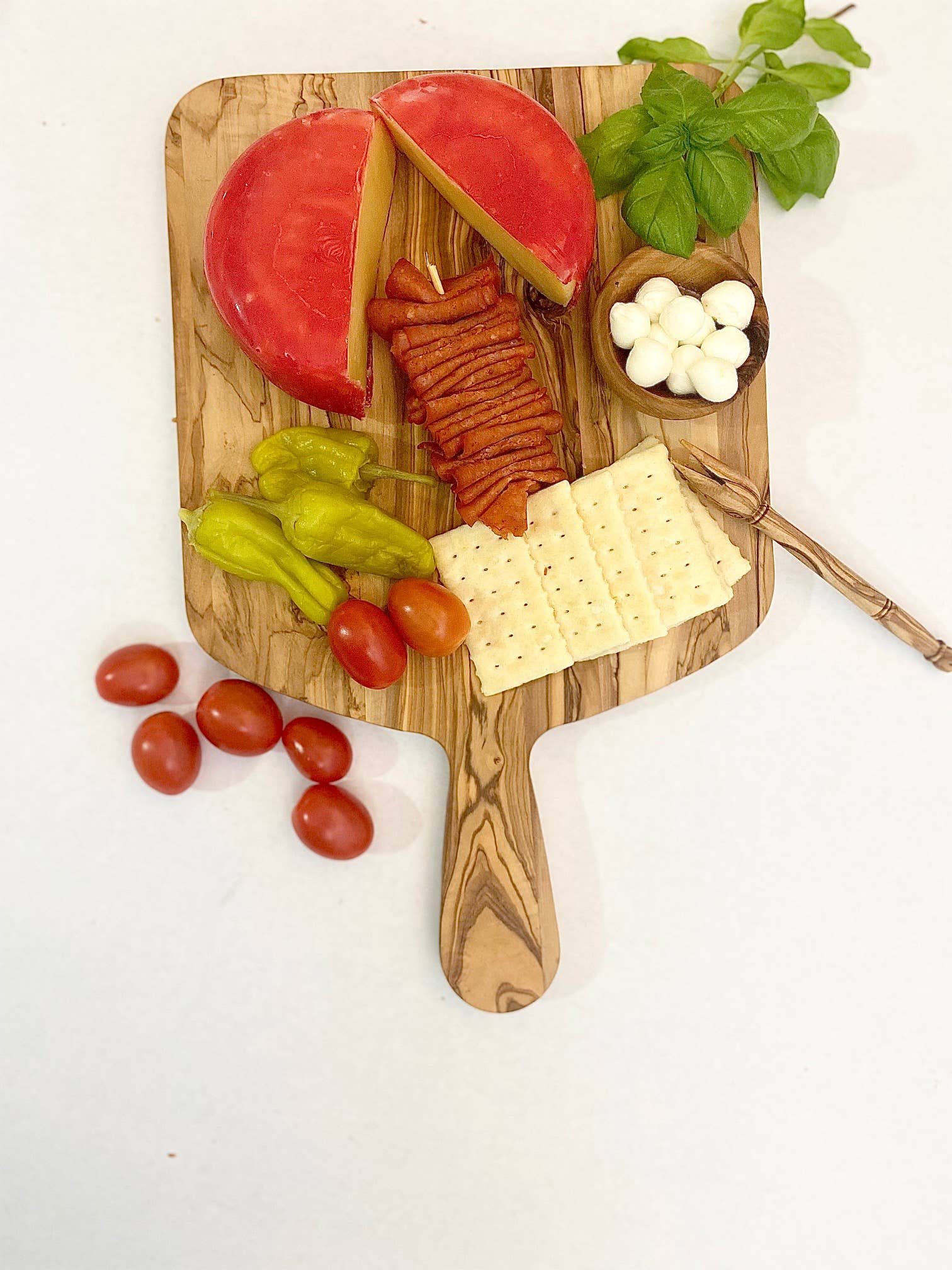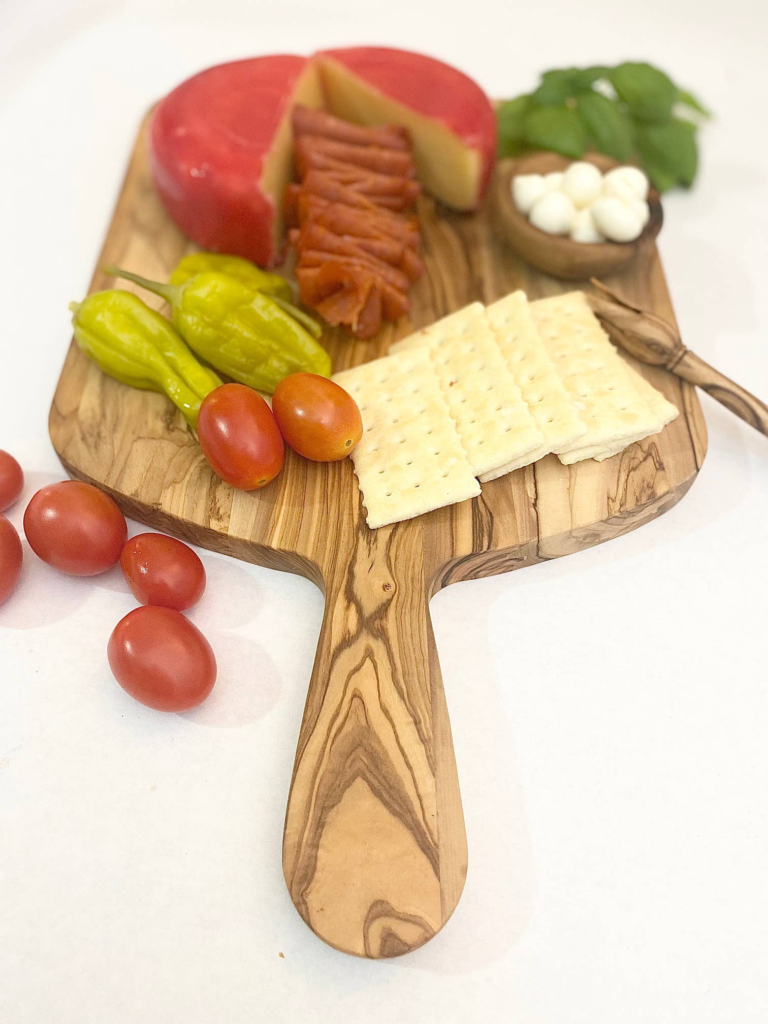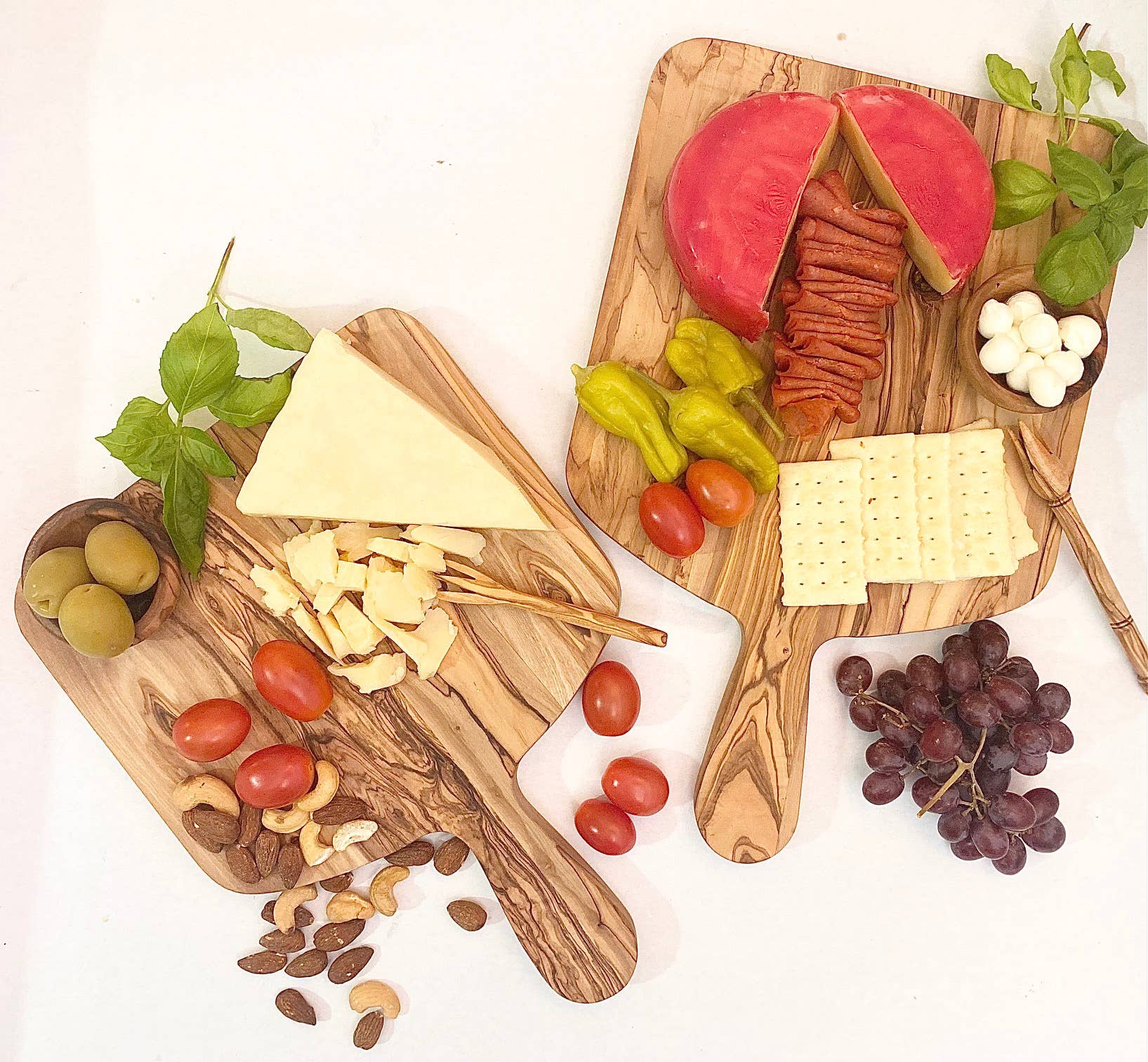 Olive wood cheese board is the perfect size for a wedge or two. Cute fun size, easy to carry.