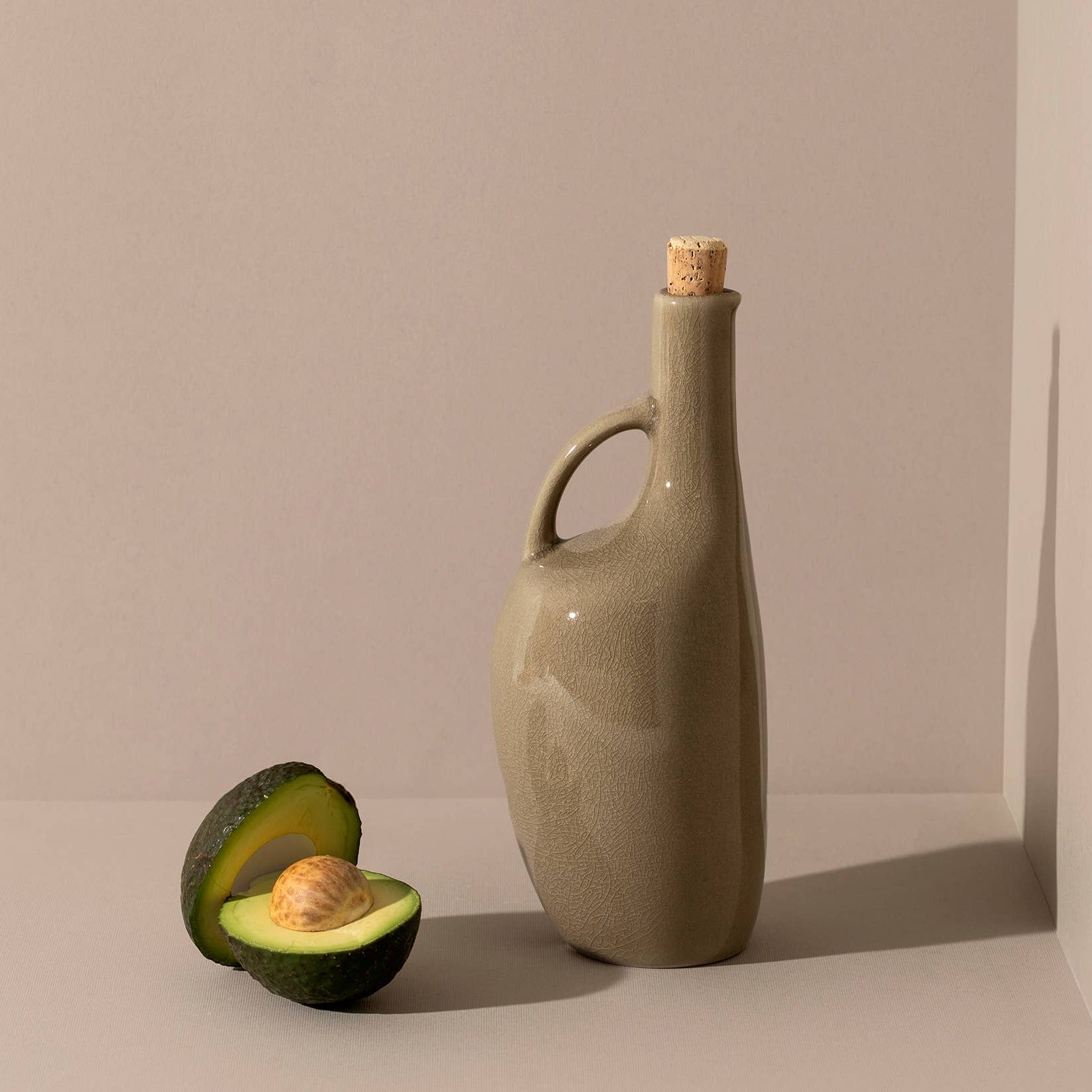 Hand-made by Tunisian craftsmen in fragrant gardens along the Mediterranean Sea. Handmade ceramic bottles for oil, vinegar or maple syrup, this collection is special and unique by its finish.